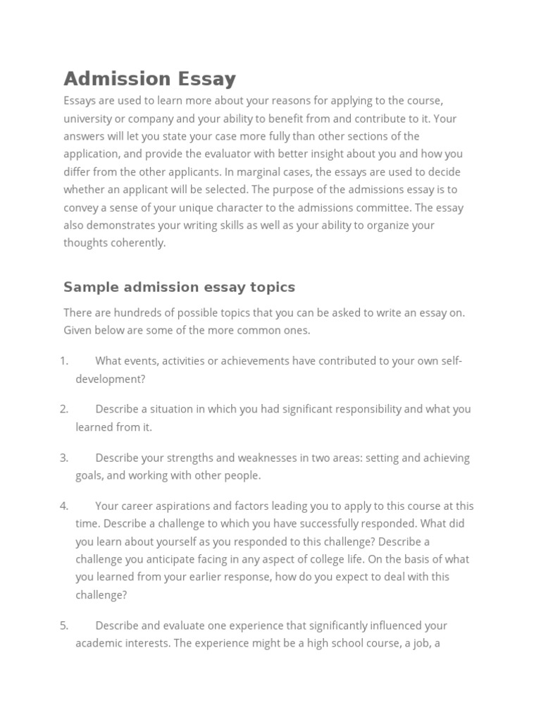 Gratitude Essay: Reflect on something that someone has done for you that has made you happy or thankful in a surprising way. How has this gratitude affected or motivated you? Accomplishment Essay: Discuss an accomplishment, event, or realization that sparked a period example college admission essay personal growth and a new understanding of yourself or others. Topic Essay: Describe a topic, idea, or concept you find so example college admission essay that it makes you lose all track of time. Why does it captivate you? What or who do you turn to when you want to learn more? Create-Your-Own Essay: Share an essay on any topic of your choice. It can be one you've already written, one that responds to a different prompt, or one of your own design.
